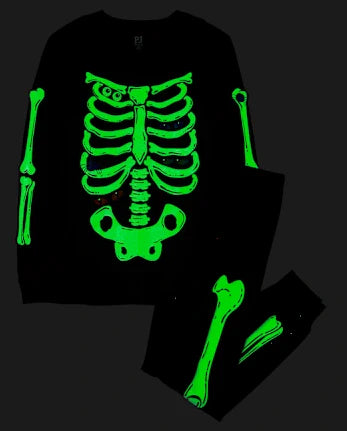 - FEATURES: Glow-in-the-dark skeleton graphic design; for best glow effect expose to light before wearing