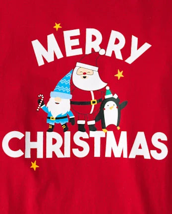 - PAJAMA TOP: Rib-knit crew neck, long sleeves, 'Merry Christmas' with Santa, penguin & gnome graphic design