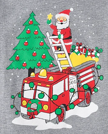 Baby And Toddler Boys Christmas Santa Firetruck Graphic Tee - gray