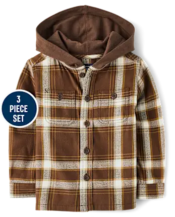 - HOODED TOP: Side-brushed interior & exterior for added softness & warmth, boxy fit, attached contrast hood, long sleeves with button cuffs, button front, button chest pockets, straight hem, allover plaid