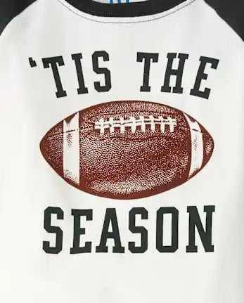 - PAJAMA TOP: Crew neck, long contrast raglan sleeves with banded cuffs, 'Football Is My Favorite Season' with football graphic design