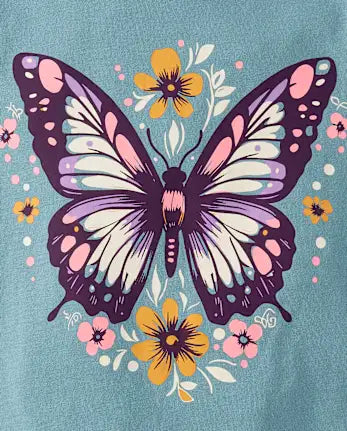 Baby And Toddler Girls Floral Butterfly Graphic Tee - blue
