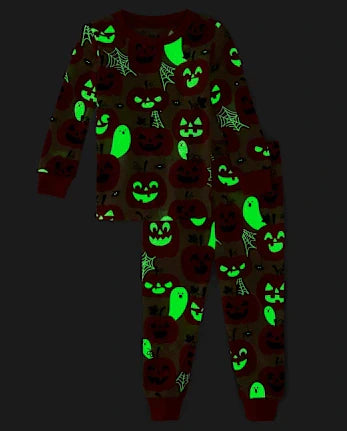 Baby And Toddler Glow Pumpkin Snug Fit Cotton Pajamas - tan