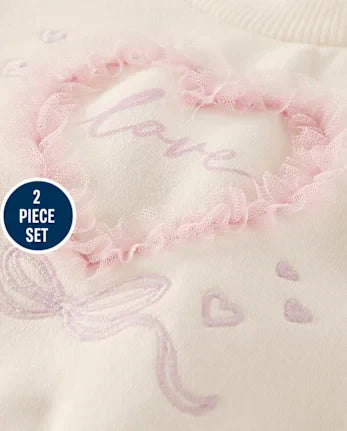 Baby Girls Mesh Heart 2-Piece Playwear Set - white
