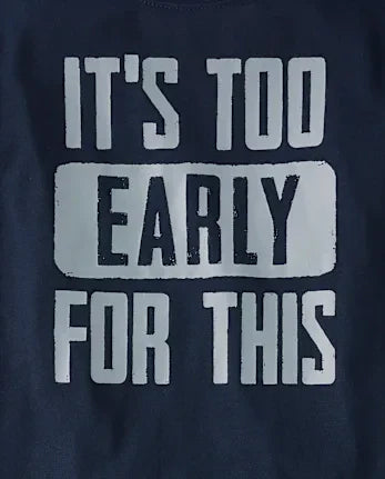 - PAJAMA TOP: Rib-knit crew neck, long sleeves, 'It's Too Early For This' graphic design