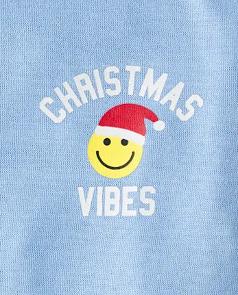- PAJAMA TOP: Rib-knit crew neck, long sleeves, 'Christmas Vibes' with happy face in Santa hat