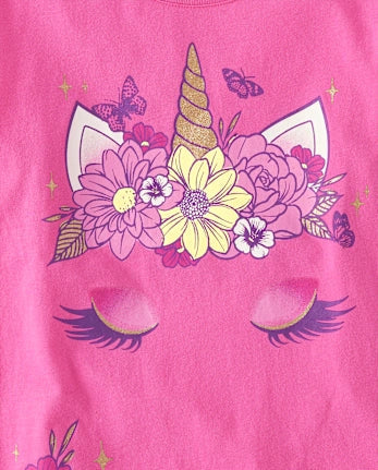 Girls Flower Crown Unicorn Graphic Tee - pink