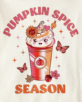 - PAJAMA TOP: Crew neck, long sleeves with banded cuffs, 'Pumpkin Spice Season' with pumpkin spice latte graphic design