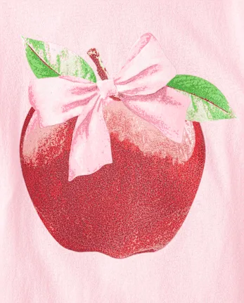 Girls Apple Bow Graphic Tee - pink
